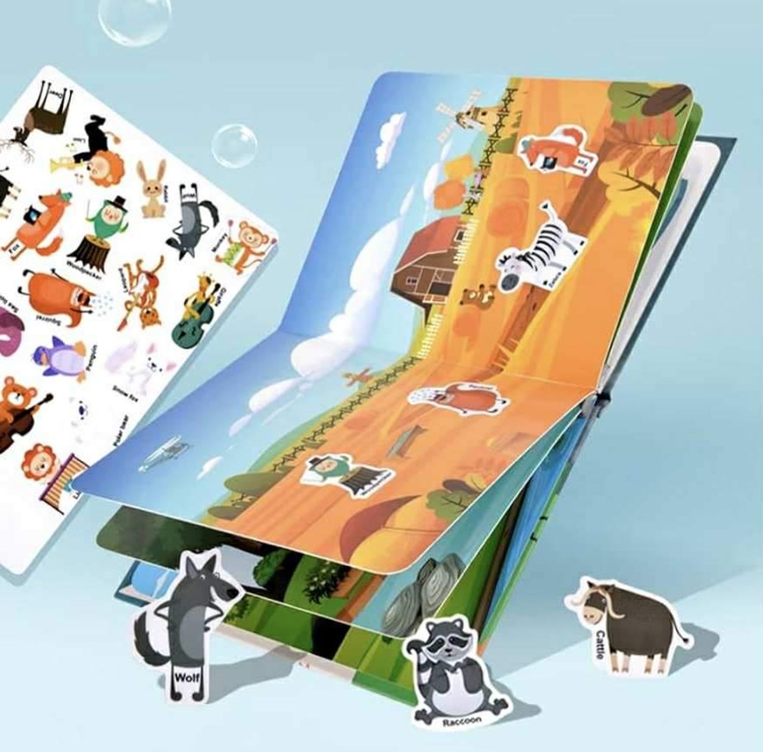 Энэхүү ном доторх үзэгдэл бүр нь уран сэтгэмж, бүтээлч сэтгэлгээг өдөөх зорилготой тул хүүхэд өөрийн адал явдлуудыг багтаас дүр бүтээх боломжтой. Наалддаг стикерээ угаагаад дахин ашиглах боломжтой ба хүүхдэд харшил өгөхгүй хоргүй силикон материалаар хийгдсэн. Стикерээ ашиглан хүүхэд тань өөрийн дуртай ертөнцийг бүтээж болох юм. Хүүхдийн бүтээлч сэтгэлгээ, сэтгэн бодох чадвар , харааны хурдыг хөгжүүлнэ. Хаана ч авч явахад хялбар.