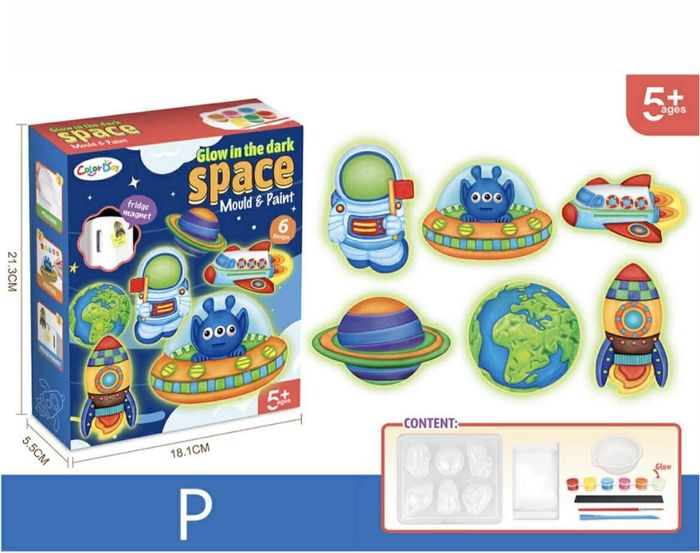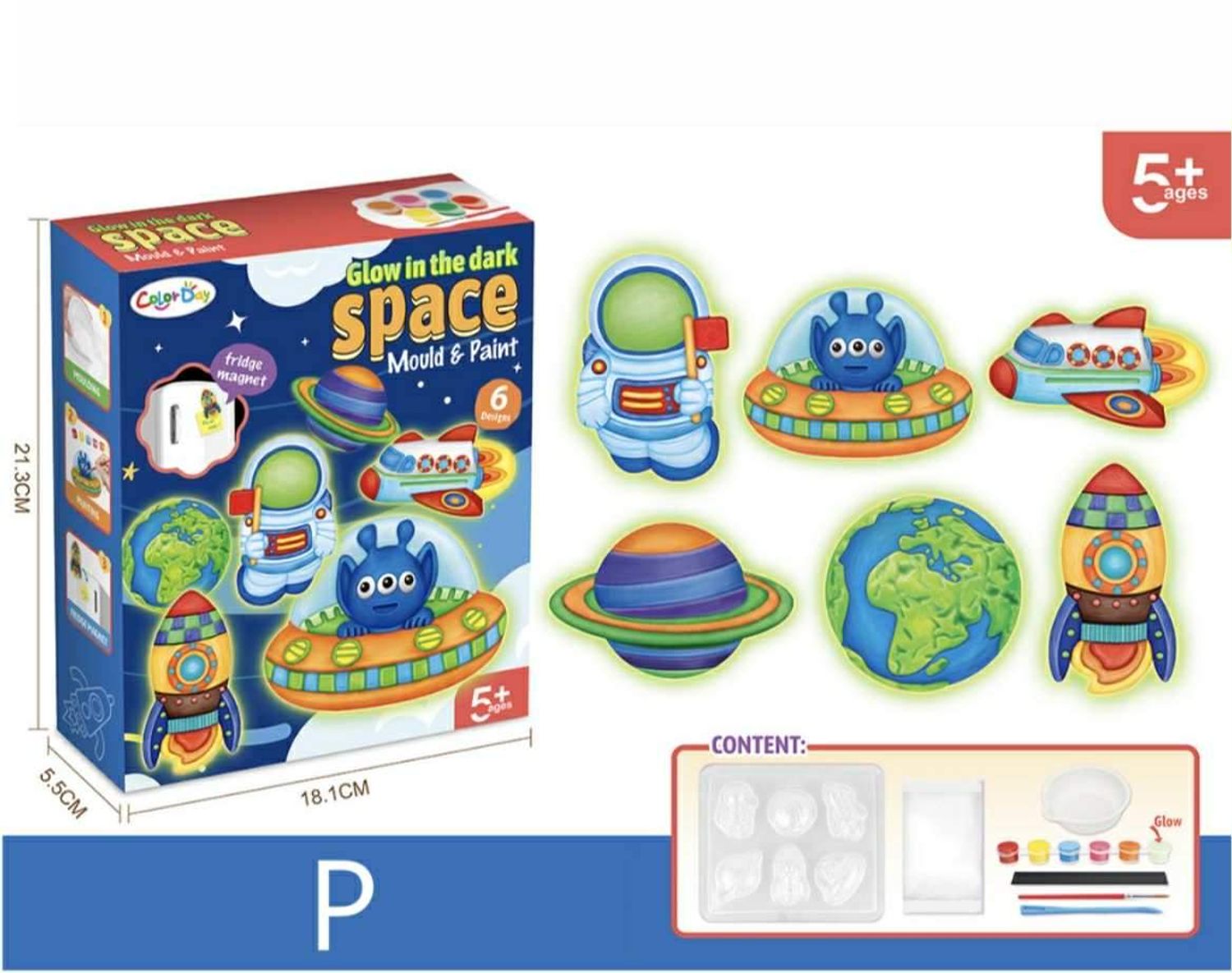 5 ба түүнээс дээш насны хүүхдүүдэд зориулсан сонирхолтой, бүтээлч сэтгэлгээг хөгжүүлэхэд туслах тоглоом юм. Энэхүү иж бүрдэл нь хүүхдүүд өөрсдөө сансрын сэдэвт (ангараг, гариг, пуужин, сансрын нисгэгч, НЛО г.м) дүрсүүдийг гипсээр хийж, будан гэрэлтдэг чимэглэл болгох боломжийг олгоно.