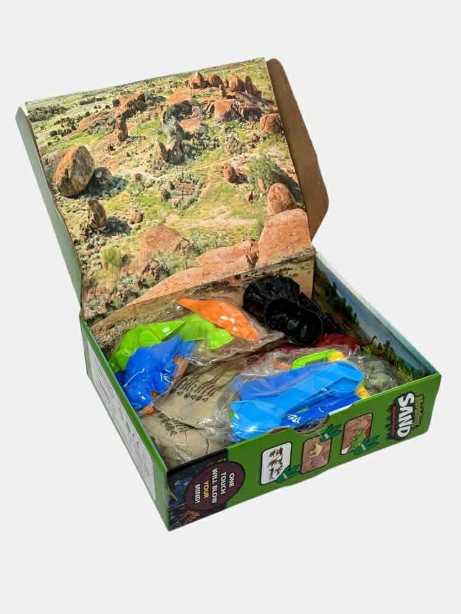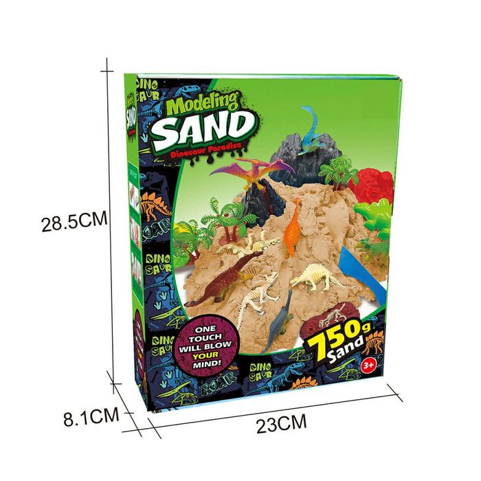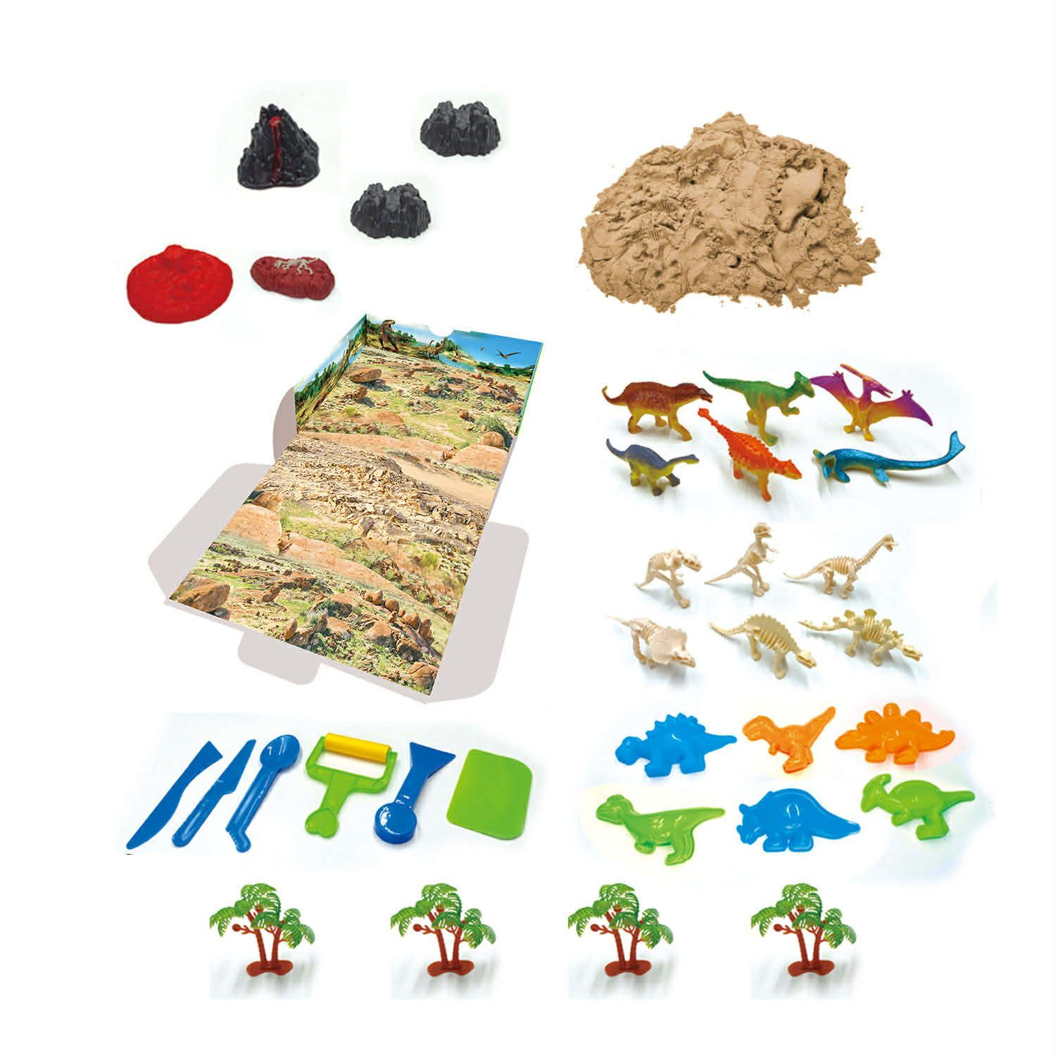 Тоглоомонд янз бүрийн өнгөт болон араг яс хэлбэрийн динозавар , ойн дүрсүүд,мод, бут зэрэг байгалийн жижиг тоглоом болон элсийг хэлбэржүүлэх хэв багтсан.Эдгээрийн тусламжтай хүүхдүүд динозаврын жижиг “ертөнц” бүтээж, төсөөлөл, бүтээлч сэтгэлгэгээ хөгжүүлэх боломжтой. Мөн гарын булчин, хийсвэр сэтгэлгээг хөгжүүлж өгдөг.