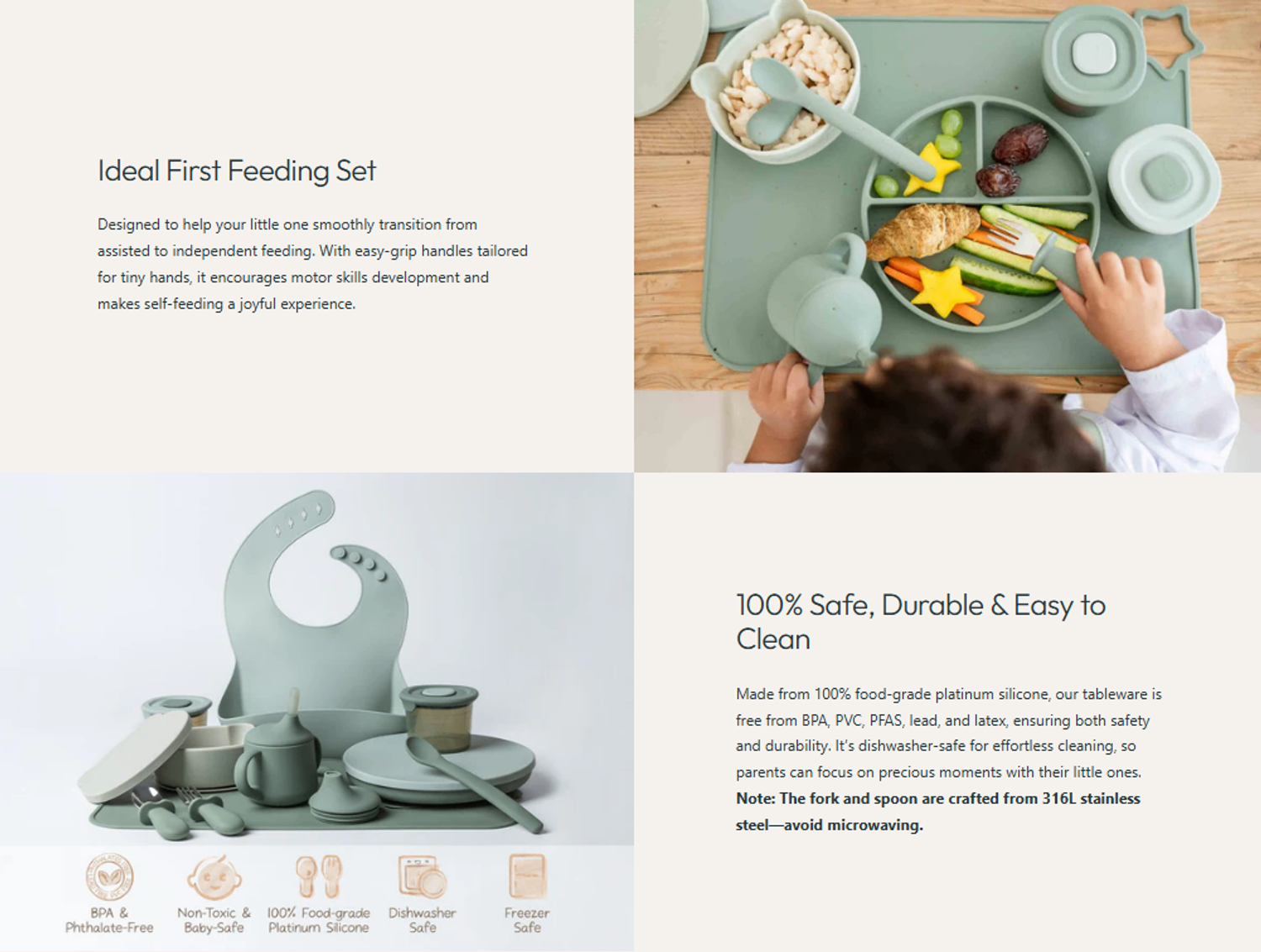 ⚠️ Анхааруулга: Сэрээ, халбага нь 316L зэвэрдэггүй ган — микро долгионы зууханд хийхгүй.